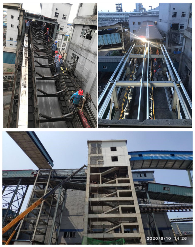 至新區(qū)7、8號焦?fàn)t輸煤生產(chǎn)線是焦化筒倉一期一步工程施工難度最大的一條生產(chǎn)線,新建3個轉(zhuǎn)運(yùn)站、2條皮帶通廊、改造1條皮帶通廊,全長400多米。皮帶通廊即有半地下鋼筋混凝土結(jié)構(gòu)也有架空鋼結(jié)構(gòu),架空部分緊靠鐵路及高落差護(hù)坡,與生產(chǎn)嚴(yán)重交叉,組織施工及吊裝難度極大。項(xiàng)目部各專業(yè)人員積極配合,協(xié)調(diào)各施工單位,分段作業(yè),由于組織得力,各專業(yè)銜接緊密、配合緊張有序,土建積極給鋼結(jié)構(gòu)、鋼結(jié)構(gòu)積極為機(jī)裝、機(jī)裝積極為電裝及后工序創(chuàng)造條件,特別是最后三天,鋼結(jié)構(gòu)收尾、支架及皮帶安裝、單機(jī)調(diào)試、設(shè)備運(yùn)行調(diào)整、舊皮帶通廊改造、新舊系統(tǒng)聯(lián)動控制調(diào)試、照明報(bào)警及語音系統(tǒng)安裝調(diào)試,時(shí)間緊任務(wù)重施工難責(zé)任大,現(xiàn)場各類施工人員多,項(xiàng)目部人員靠現(xiàn)場,緊抓安全,積極協(xié)調(diào),最終克服了各種困難,最終超額提前圓滿完成任務(wù)。