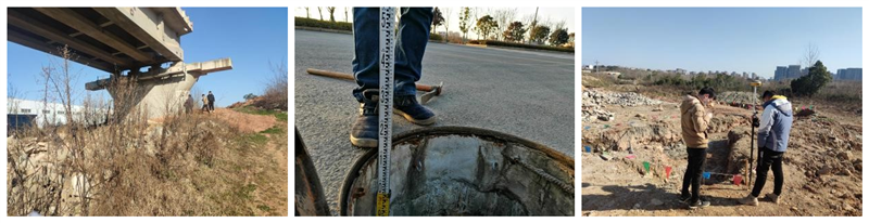 本次現(xiàn)場(chǎng)實(shí)測(cè)數(shù)據(jù)包含現(xiàn)狀鐵路橋橋墩坐標(biāo)、橋梁凈空,已建設(shè)道路交叉口坐標(biāo)及高程,已施工雨、污水井坐標(biāo)及井深等,測(cè)量項(xiàng)目涉及到“陽(yáng)邏之心”50多萬(wàn)平方米二十余條道路,測(cè)量范圍廣闊,測(cè)量目標(biāo)眾多,而測(cè)量人員僅為王學(xué)皓、吳修業(yè)及二十冶測(cè)量技術(shù)員陳工,實(shí)測(cè)任務(wù)異常艱巨。現(xiàn)場(chǎng)多為半施工或未施工道路,測(cè)量情況十分復(fù)雜,并同時(shí)遭遇武漢強(qiáng)降溫天氣,踏勘工作面臨極大考驗(yàn)。尤其在雨污水井?dāng)?shù)據(jù)測(cè)量方面,部分道路車(chē)流量較大,需搭設(shè)臨時(shí)圍擋保證測(cè)量安全;部分重型井蓋受重載車(chē)輛碾壓密實(shí)變形,現(xiàn)有工具簡(jiǎn)陋,僅打開(kāi)井蓋這一項(xiàng)往往需要數(shù)十分鐘,完成單個(gè)井?dāng)?shù)據(jù)測(cè)量至少需要一個(gè)多小時(shí),遠(yuǎn)遠(yuǎn)超出預(yù)估時(shí)間。與時(shí)間節(jié)點(diǎn)競(jìng)速,測(cè)量人員踏霜踩露而出,披星戴月而歸,歷經(jīng)四天全力以赴、克難攻堅(jiān),圓滿完成所有測(cè)量任務(wù),為設(shè)計(jì)工作順利進(jìn)行提供了有力的數(shù)據(jù)支持。